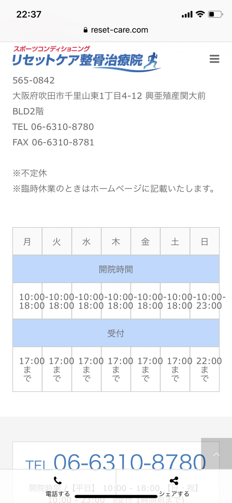 リセットケア整骨治療院(北大阪)WEBサイト開設しました!